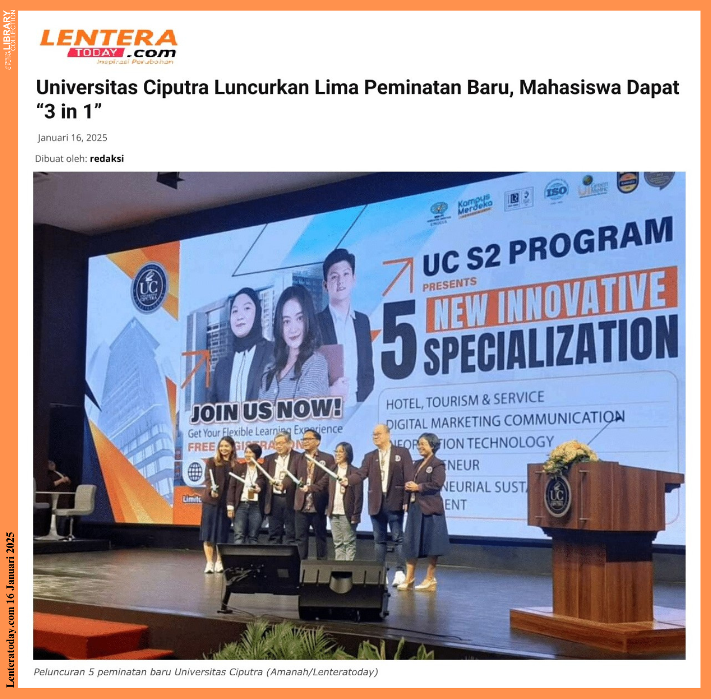 Sumber berita : https://lenteratoday.com/universitas-ciputra-luncurkan-lima-peminatan-baru-mahasiswa-dapat-3-in-1/