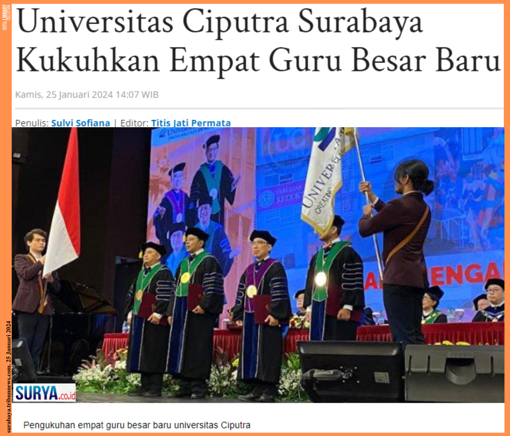 Sumber berita: https://surabaya.tribunnews.com/2024/01/25/universitas-ciputra-surabaya-kukuhkan-empat-guru-besar-baru