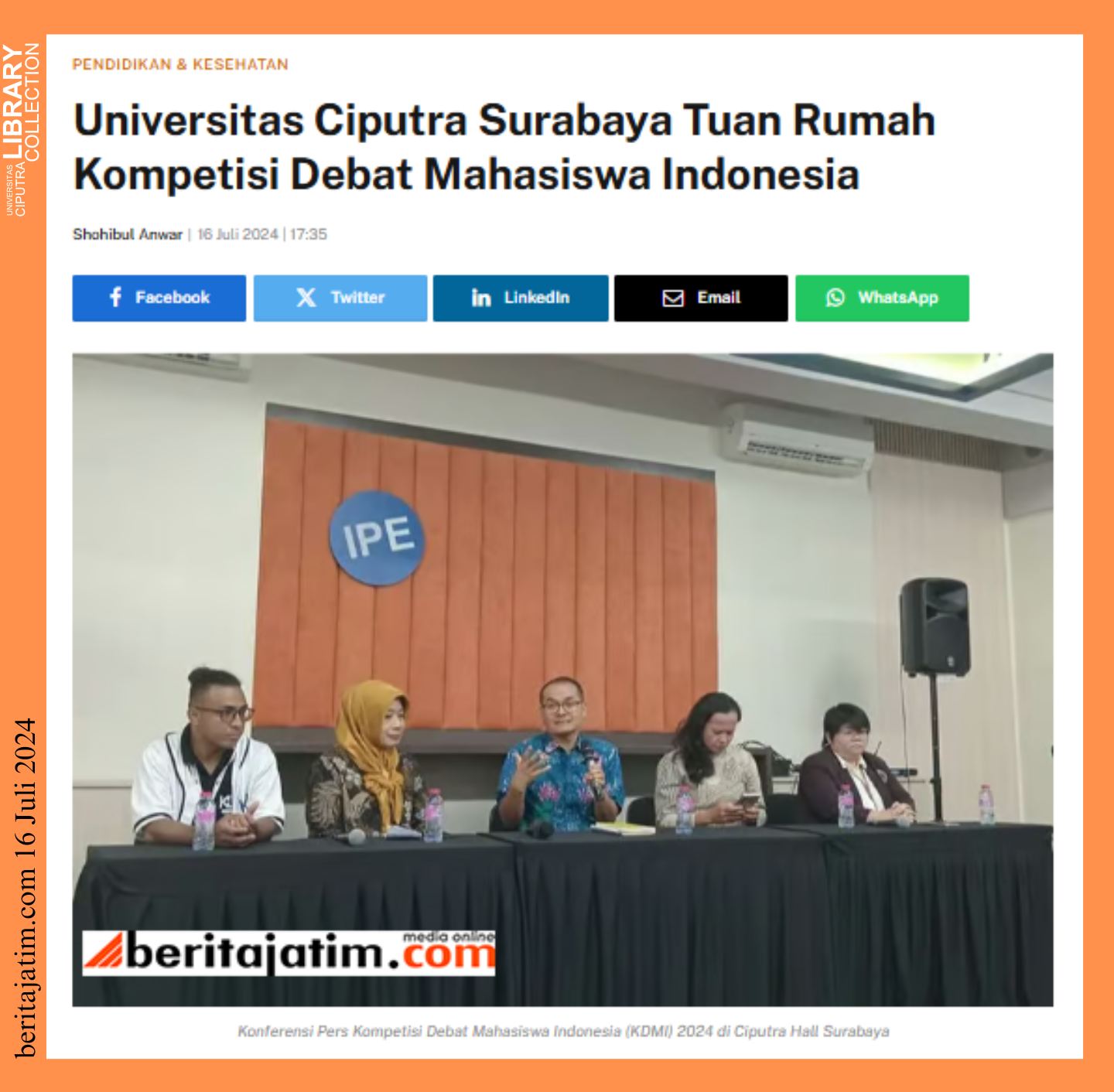 Sumber: https://beritajatim.com/universitas-ciputra-surabaya-tuan-rumah-kompetisi-debat-mahasiswa-indonesia