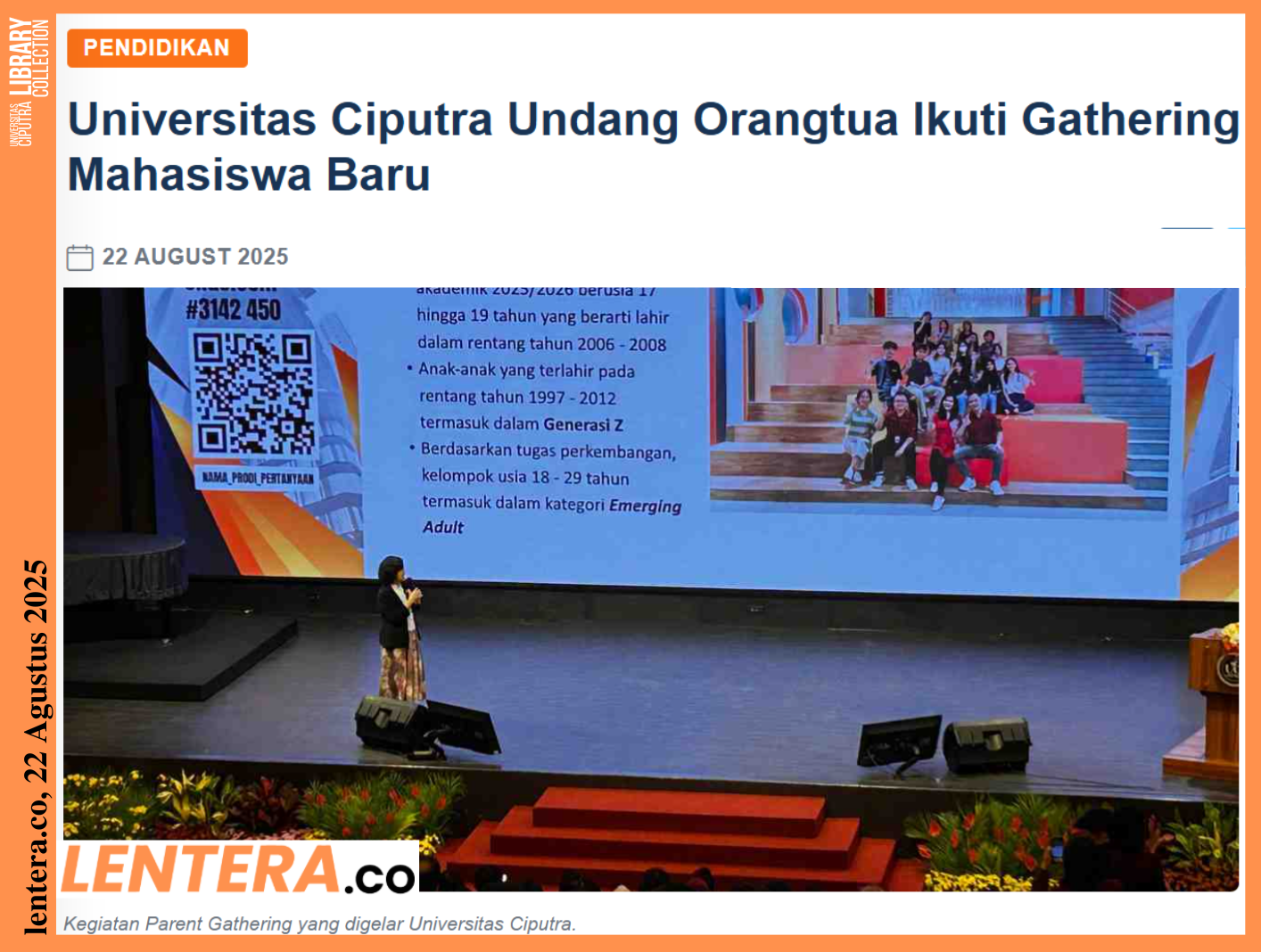SURABAYA (Lentera) –Lebih dari 1.300 orangtua mahasiswa baru (maba) Universitas Ciputra (UC) Surabaya mengikuti Parent Gathering di Dian Auditorium, Jumat (22/8/2025).