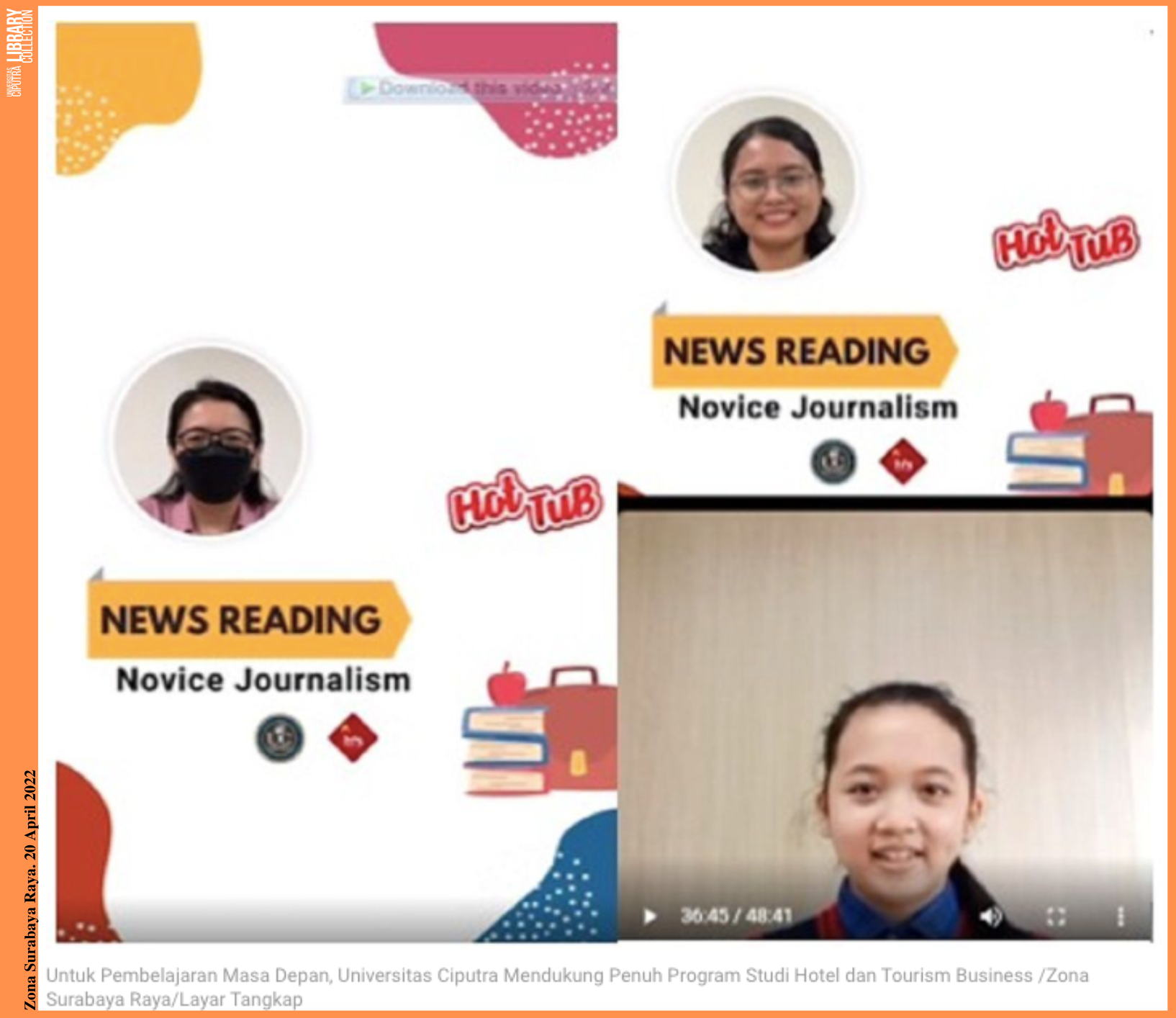 Pentingnya pengenalan literasi digital kepada siswa SMP dan SMA di Surabaya menjadi latar belakang program studi Hotel and Tourism Business, Universitas Ciputra Surabaya untuk menyelenggarakan program Pengabdian Masyarakat (Abdimas) yang bertema “Pengembangan Kemampuan Jurnalistik Online Siswa Junior dan Senior High di Happy Family School Menggunakan Media Live Streaming Instagram Hot Tub UC”. Program Abdimas yang diketuai oleh Bapak Dr. Thomas Stefanus Kaihatu, M.M. ini bertujuan untuk mengajarkan kegiatan jurnalistik dan meningkatkan kemampuan literasi digital siswa SMP dan SMA di Happy Family School Surabaya. Program ini dapat terlaksana dengan hibah pengabdian masyarakat dari Lembaga Penelitian dan Pengabdian Masyarakat (LPPM) Universitas Ciputra Surabaya.