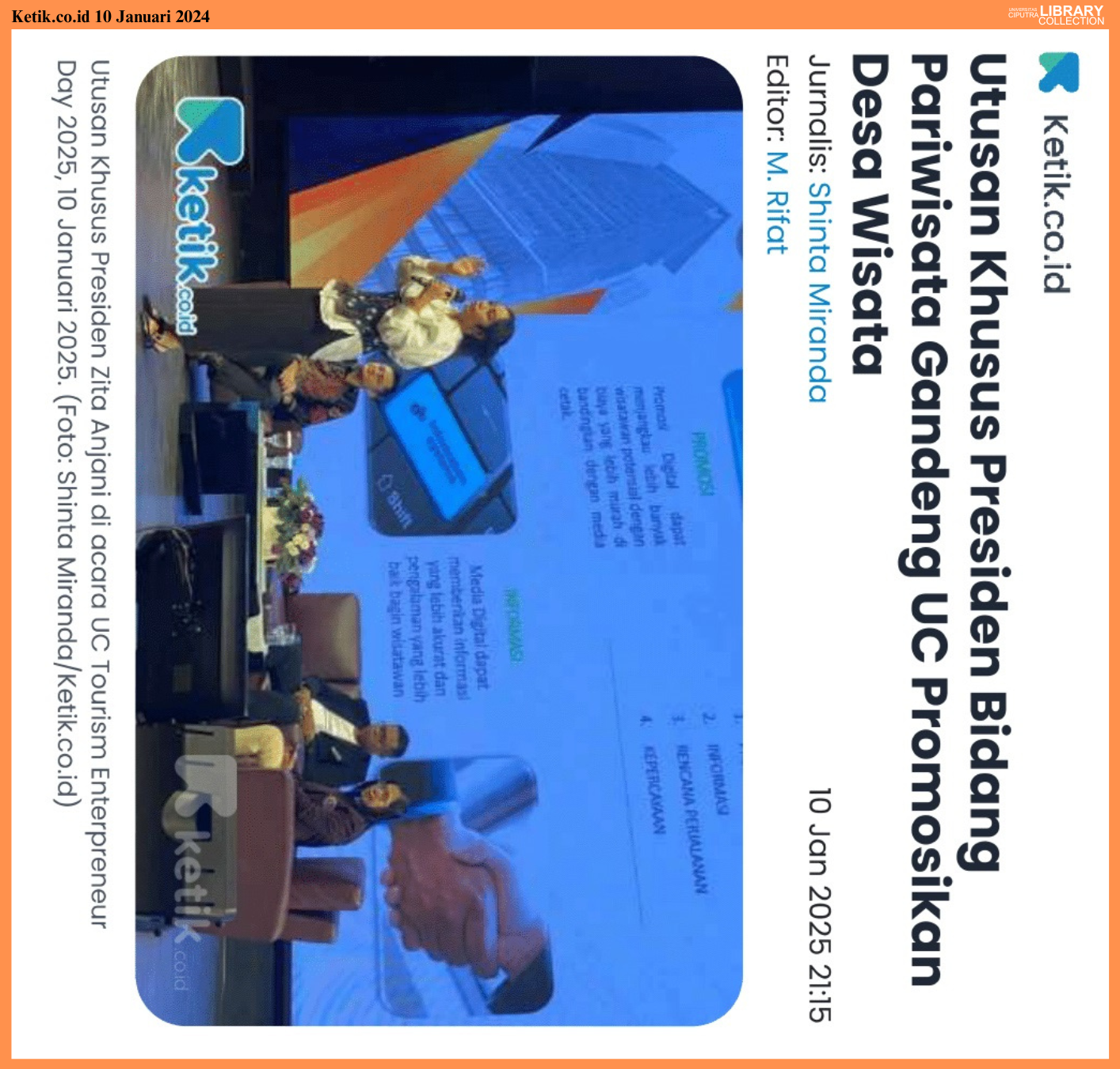Ajakan ini disampaikan pada UC Tourism Enterpreneur Day 2025 yang digelar di Lantai 7 kampus Universitas Ciputra pada Jumat 10 Januari 2025.
