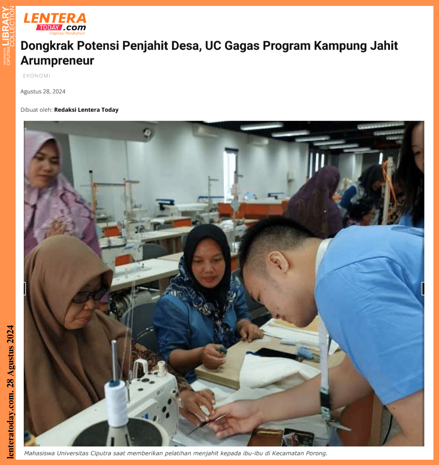 “Kami berterima kasih kepada Kementerian Pendidikan dan Kebudayaan yang telah menyediakan sumber daya melalui Universitas Ciputra Surabaya membantu pengembangan kewirausahaan di Medan,” ucapnya.