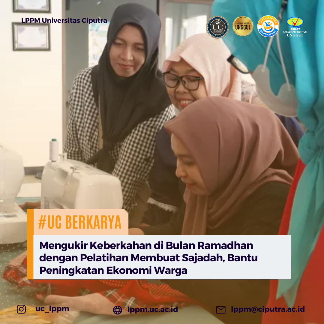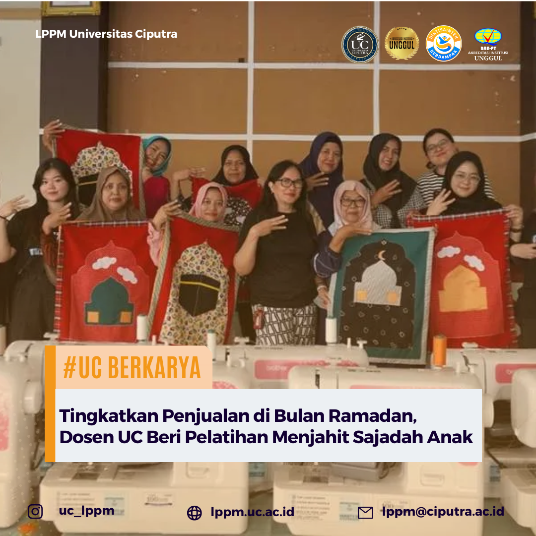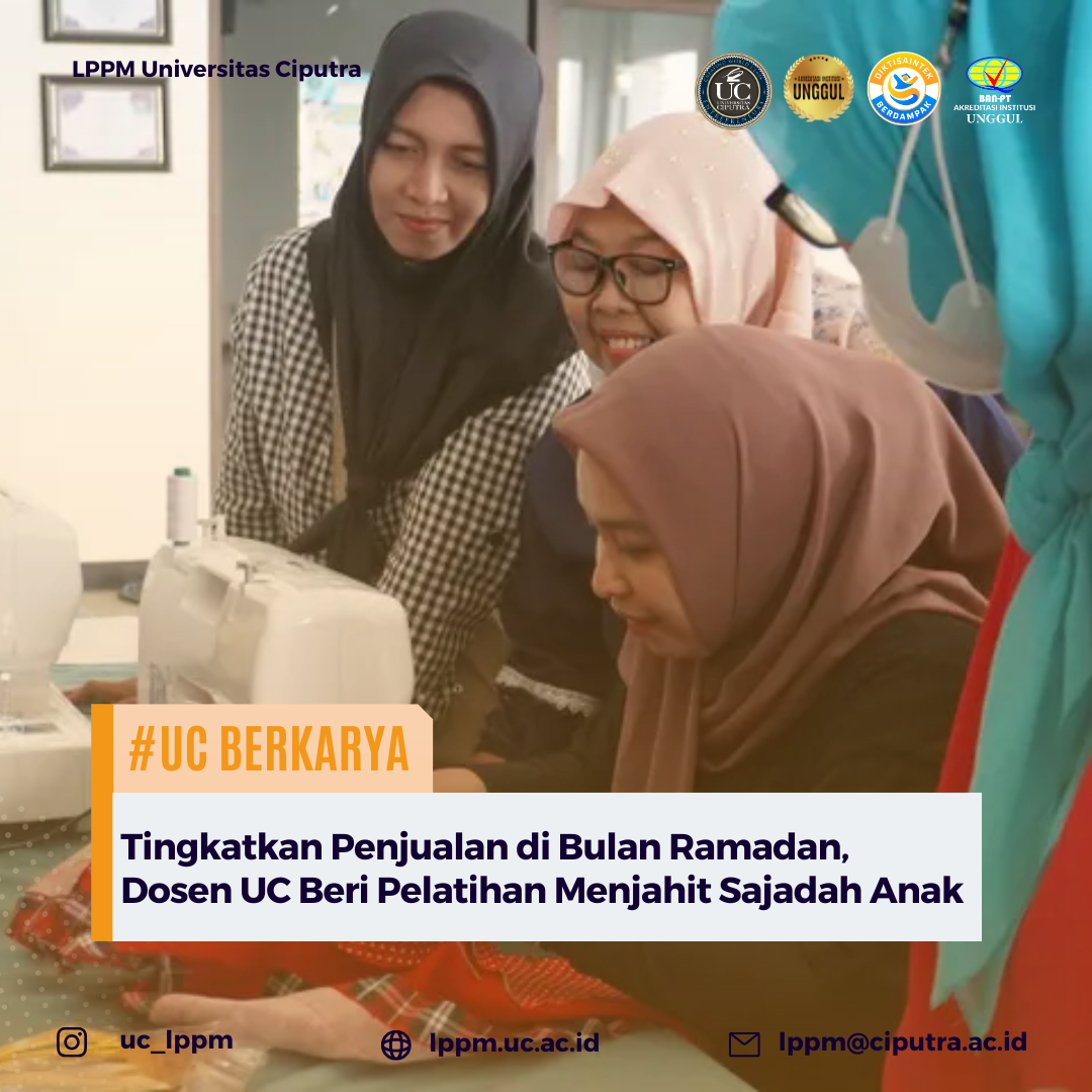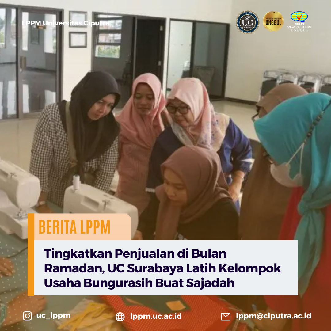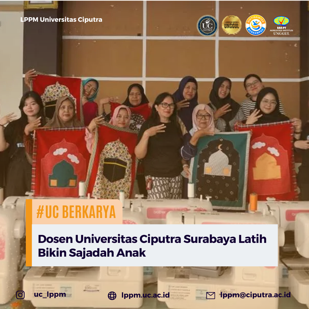 Berada di bulan Ramadan dan menjelang Idul fitri, Universitas Ciputra (UC) Surabaya mendorong peningkatan kemampuan Kelompok Usaha Bungurasih Handmade dalam membuat sajadah. Upaya itu, dilakukan oleh Louisa Christine Hartanto dosen…