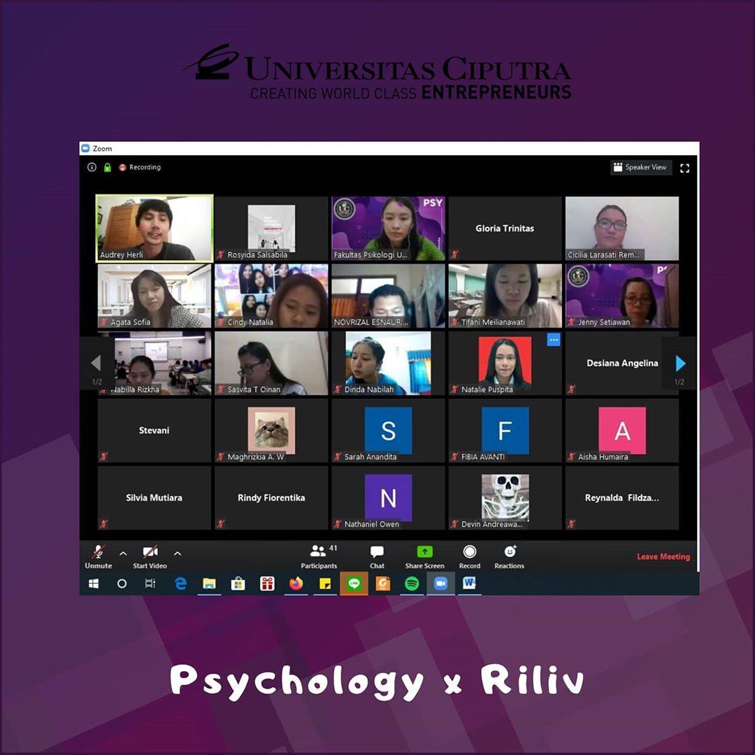 Sebagai bentuk pembekalan untuk mahasiswanya yang nanti juga akan terjun sebagai praktisi psikologi setelah lulus, pada Jumat, 17 April 2020, Fakultas Psikologi Universitas Ciputra mendatangkan Bapak Audrey Maximillian Herli selaku Co-Founder dan CEO Riliv sebagai dosen tamu dalam mata kuliah Psikologi Konseling. Riliv sendiri merupakan sebuah aplikasi yang menyediakan layanan konseling online dan sudah berdiri sejak tahun 2015.