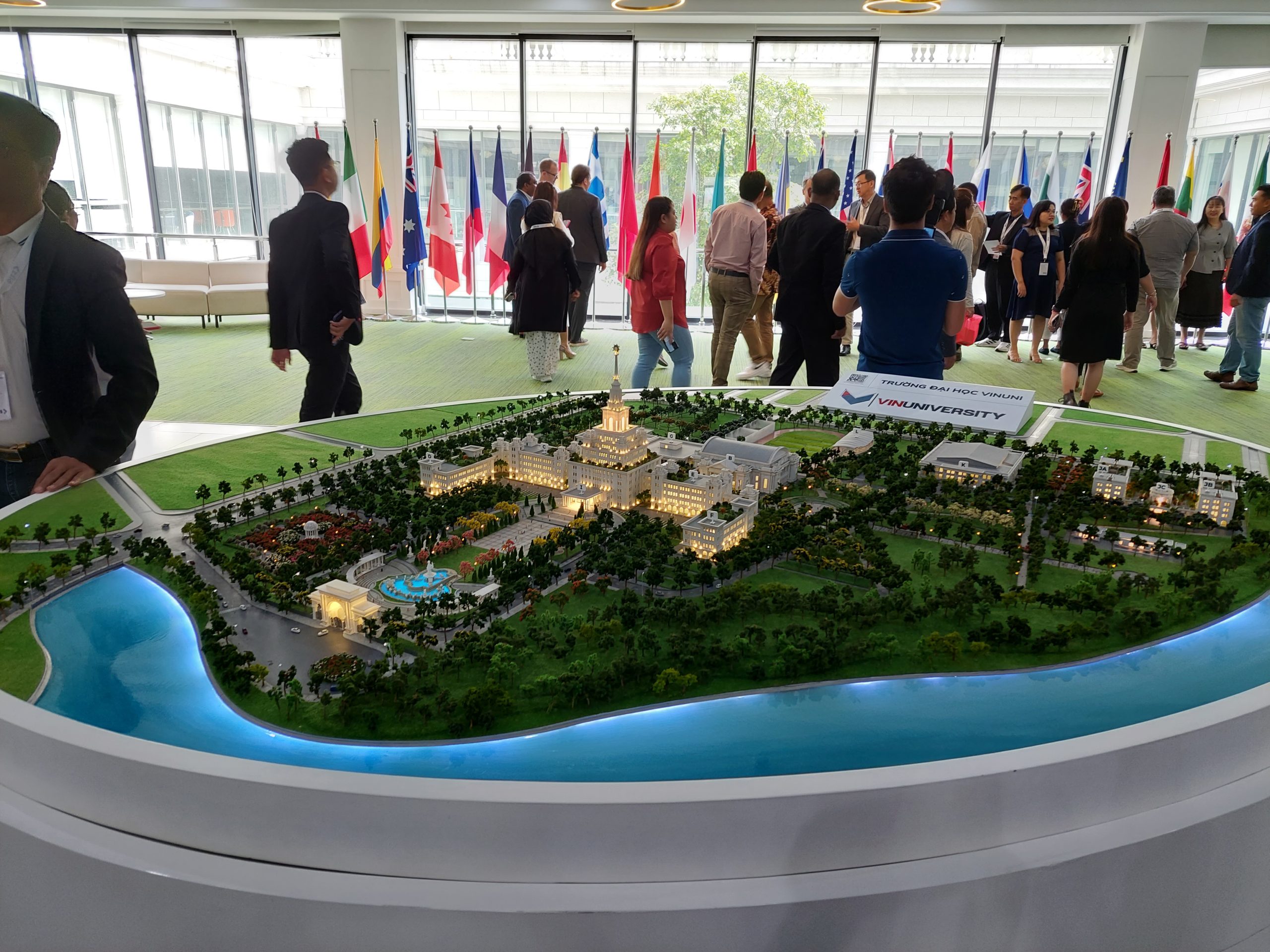 Vin University yang berdiri di atas lahan seluas 420 hektar mengusung konsep kampus hijau dengan hanya 19% area terbangun dan 117 hektar di antaranya dialokasikan untuk ruang hijau. Fasilitas kampus meliputi auditorium berkapasitas 3.000 orang, asrama wajib bagi mahasiswa tahun pertama, kantin berkapasitas 400 kursi, serta taman mawar dan ruang terbuka yang mendukung kegiatan seni dan interaksi sosial. Menariknya, tur kampus dipandu oleh mahasiswa yang telah dibekali pemahaman menyeluruh mengenai profil universitas dan kebijakan umum, seperti prinsip green campus.