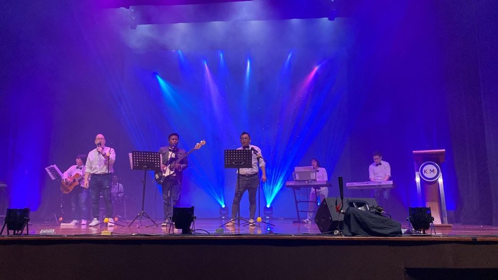 Suasana performance dari The Professor and Friends pada penutupan acara Kompetisi Debat Mahasiswa Indonesia (KDMI) 2024.