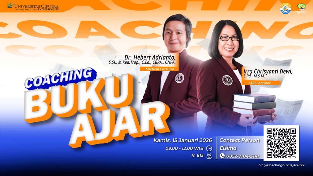 Dipandu oleh fasiltator berpengalaman, coaching ini bersifat praktis dan reflektif, memungkinkan peserta untuk mendiskusikan naskah yang sedang atau akan dikembangkan, memperoleh umpan balik konstruktif, serta memahami standar akademik dan institusional dalam penulisan buku ajar. Kegiatan ini diharapkan dapat mendorong peningkatan kualitas pembelajaran sekaligus mendukung produktivitas akademik dosen di Universitas Ciputra.