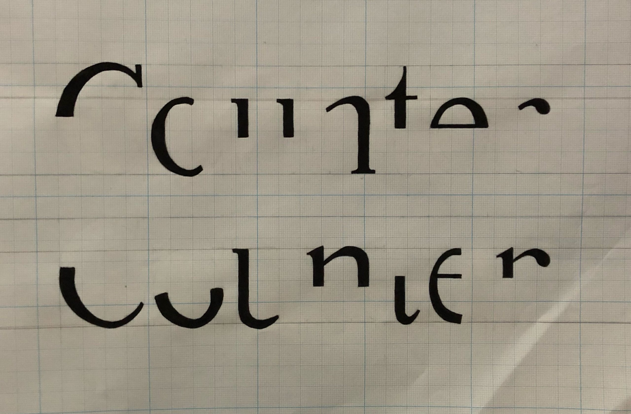 Ditugas ini mahasiswa diminta utk menggambarkan salah satu kata dalam terminology tipografi yang minimal memiliki 5 huruf. Lalu mahasiswa memotong pada bagian-bagian huruf tersebut hingga nampak seminim mungkin tetapi pertahankan legibility dan readibility-nya.