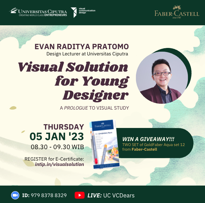 Puncak kolaborasi dengan Faber-Castell ini pada 5 Januari 2023, dengan diadakannya seminar umum “Visual Solution for Young Designer”, sekaligus pengumuman pemenang challenge Faber-Castell dan penutup kelas Basic Drawing. Seminar ini ditujukan bagi para calon Desainer muda untuk kesiapannya dalam build up konsep yang solid, menyikapi client brief, dan tips-trick untuk menghadapi kelas Visual Study bagi mahasiswa VCD 2022.