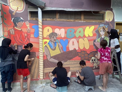 Kampung Tambak Bayan merupakan salah satu tempat yang sering digunakan oleh seniman untuk melakukan aktivitas berkesenian, misalnya pameran seni rupa, performing arts, pertunjukkan puisi, mini konser, maupun pembuatan mural. Di sana sudah banyak mural yang tercipta oleh para seniman, namun masih ada beberapa tembok yang masih polos dan juga ada beberapa mural yang sudah usang, sehingga mahasiswa VCD UC diajak untuk melakukan restorasi mural.